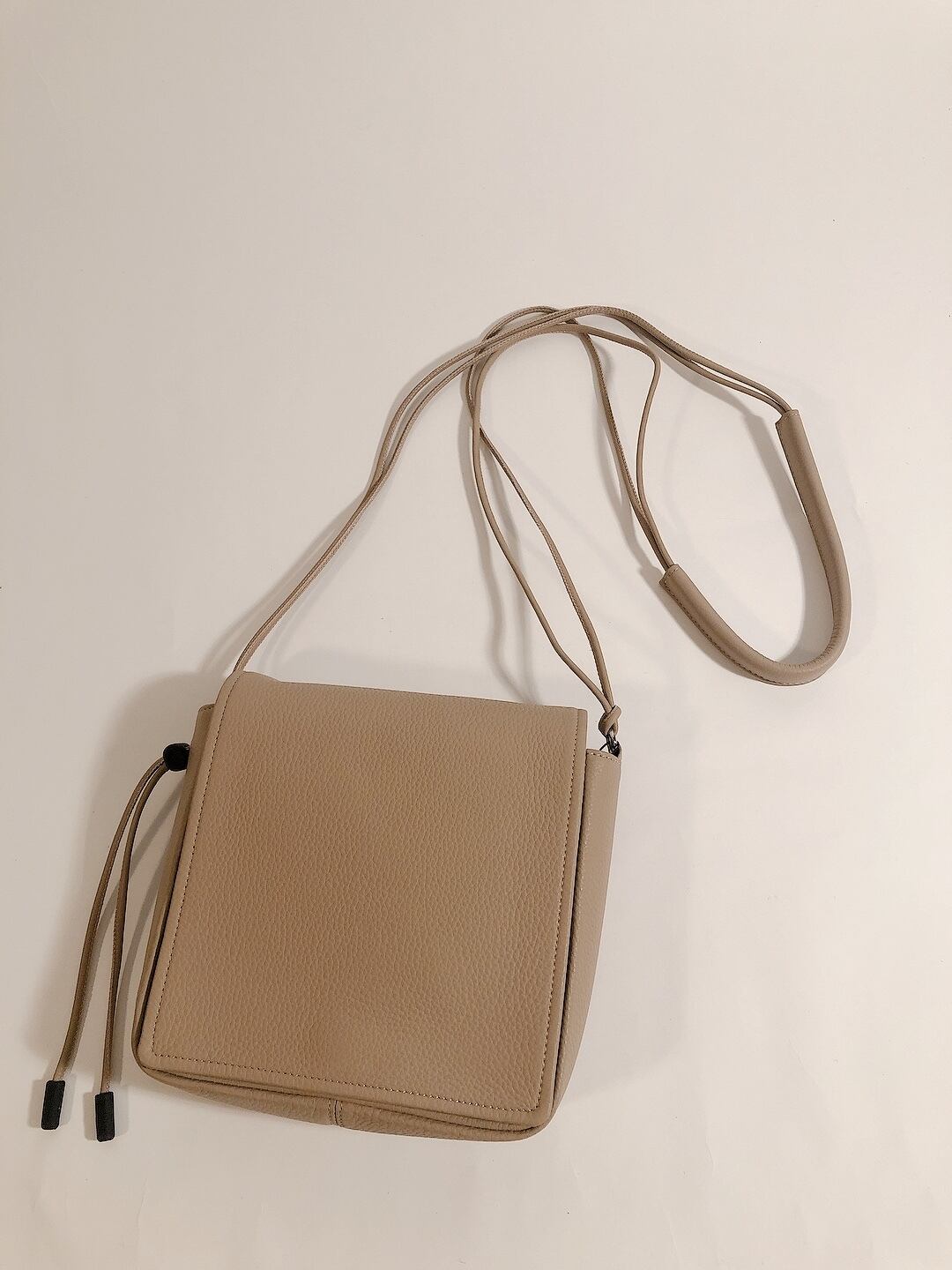 柔らかい質感の牛革を使用したスクエア型のフラップショルダーになります。
