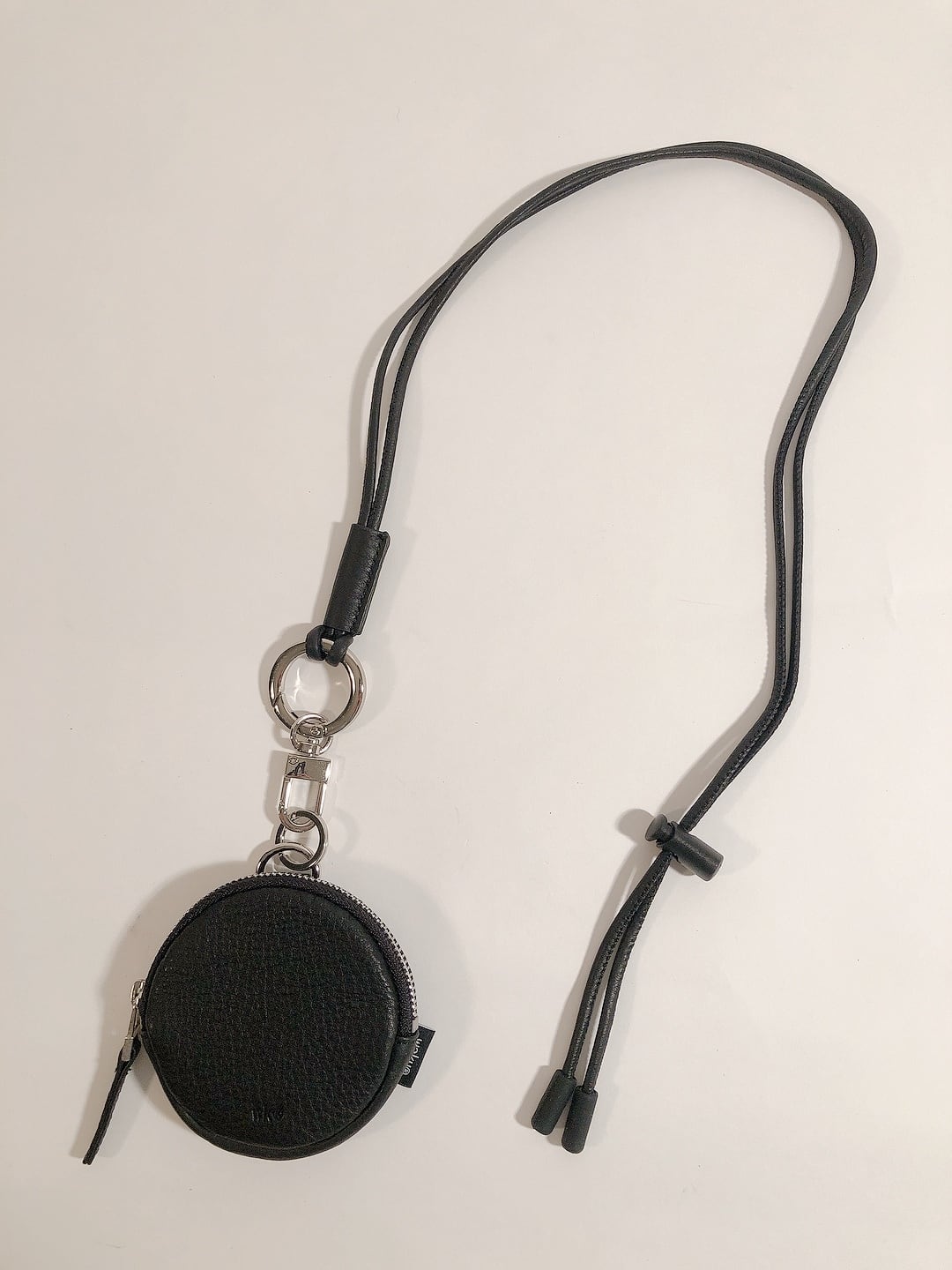 柔らかい質感の牛革を使用したサークル型のミニネックポーチになります。